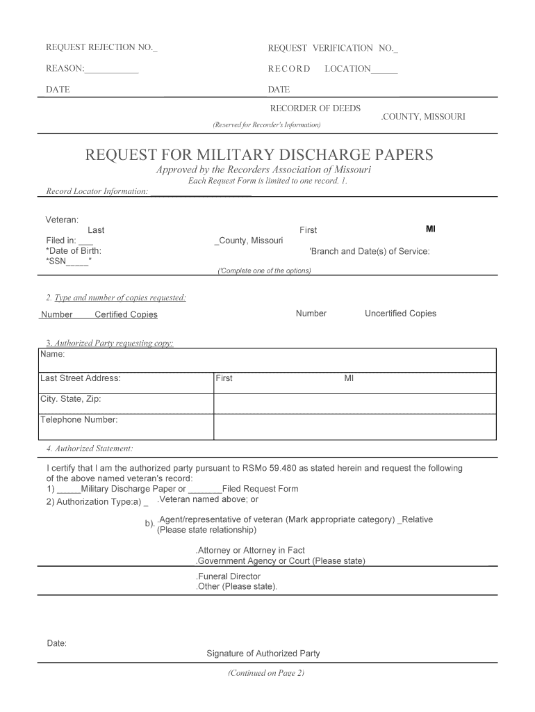 Get the free Missouri Military Discharge Papers Request Form