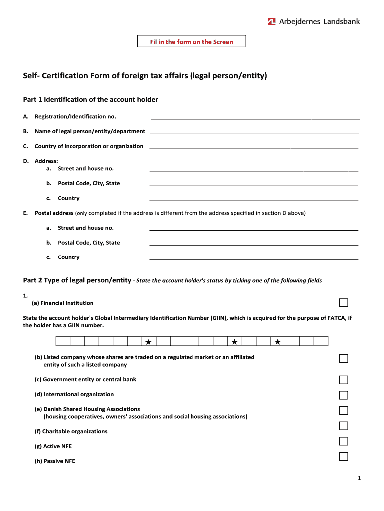 Film in the form on the Screen Self Certification Form of foreign tax affairs (legal person×entity) Part 1 Identification of the account holder A. Registration×Identification no. B. Name of legal