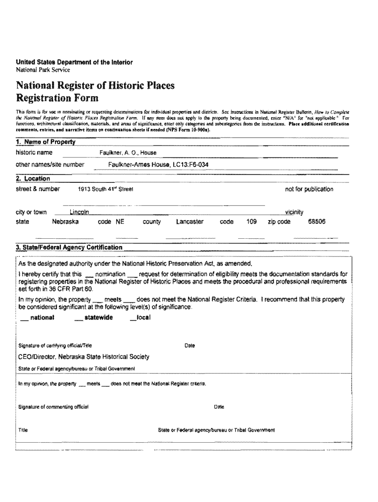 Get the free National Register of Historic Places Registration Form - lincoln ne