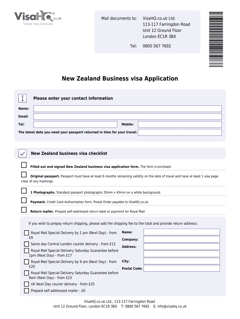 Credit Card Authorization form, Postal Order payable to Visa HQ.co.UK. Return mailer. ... New Zealand business visa fees for citizens of Kazakhstan. Type of visa.