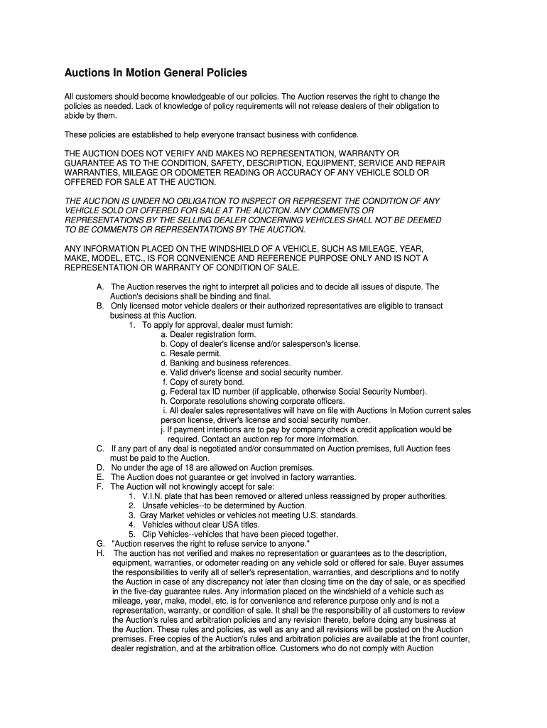 Get the free Auctions In Motion General Policies