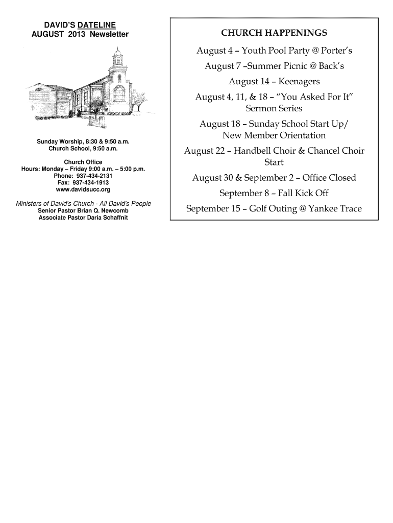 Fill out your church happenings - davidsucc online with pdfFiller!