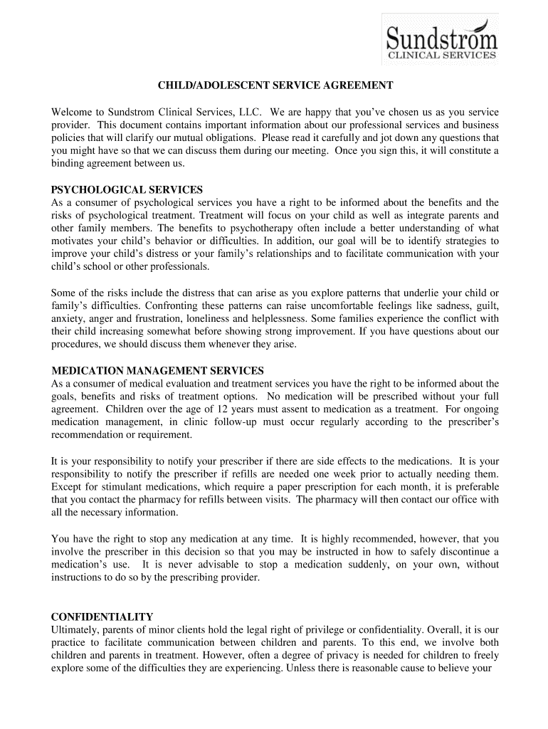 How to fill out childadolescent service agreement psychological