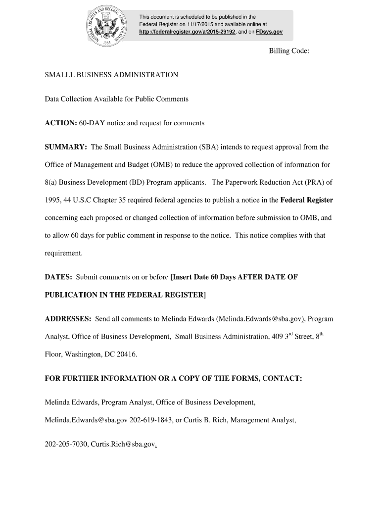 HTTP://federal register.gov×a/201529192, and on Days. Billing Code:
