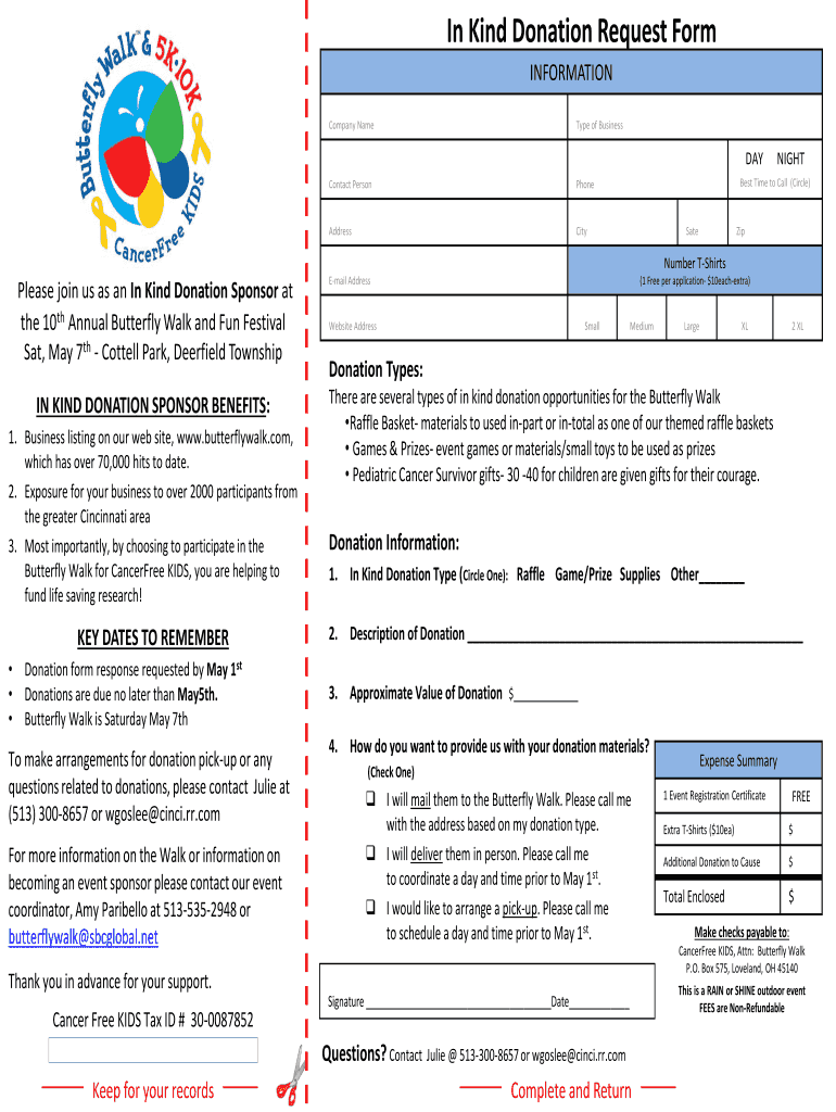 Get the free In Kind Donation Request Form - bbutterflywalkbbcomb