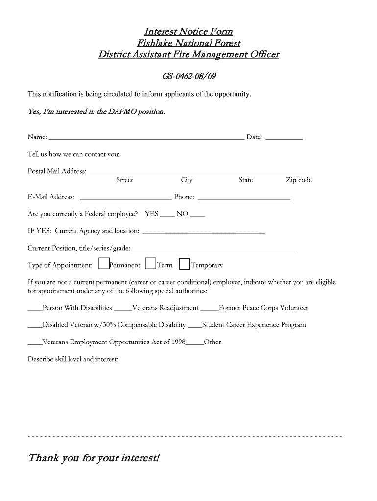 Get the free Interest Notice Form - fs usda
