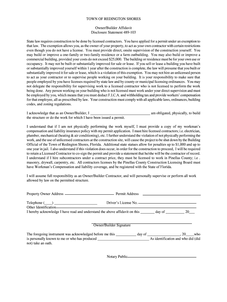 Note: Requirements for obtaining an ownerbuilder affidavit may vary by jurisdiction, so it is important to check with your local building department for specific guidelines and regulations.