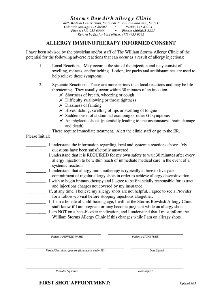 Filling out and eSigning new allergy shot patient is now simple. The solution allows you to change and reorganize PDF text, add fillable fields, and eSign the document. Start a free trial of pdfFiller, the best document editing solution.