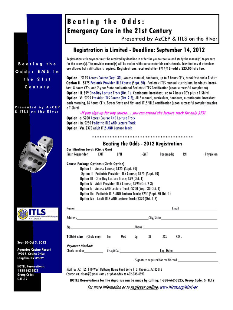 Beating the Odds: Emergency Care in the 21st Century Presented by ARCEP & ITS on the River Registration is Limited Deadline: September 14, 2012, Beating the Odds: EMS in the 21st Century Presented