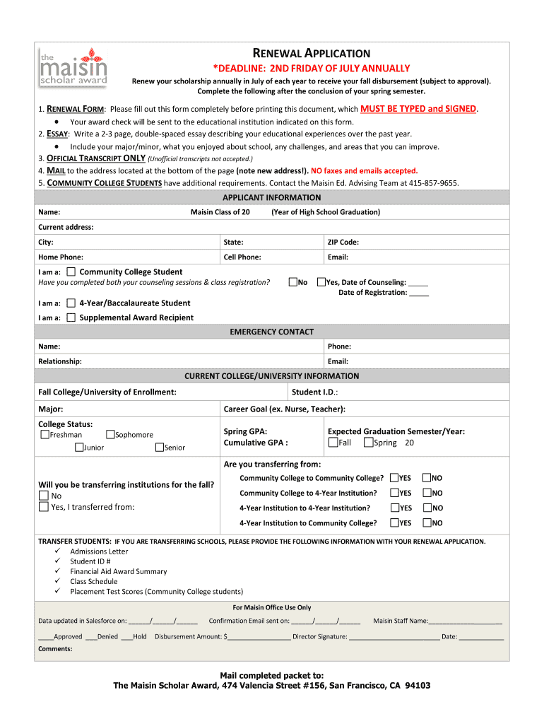 Get the free *DEADLINE 2ND FRIDAY OF JULY ANNUALLY - maisinscholars