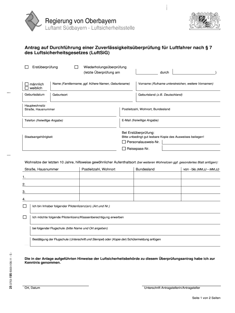 Regaining on Oberbayern Mutant Bayern Luftsicherheitsstelle Ant rag AUF Durchfhrung anger Zuverlssigkeitsberprfung for Luftfahrer each 7 DES Luftsicherheitsgesetzes (Lighting) Erstberprfung Wiederholungsberprfung