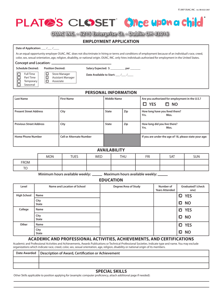 The OUAC Employment Application is an employment application form used by OUAC, INC. to gather essential personal and professional information from job applicants.