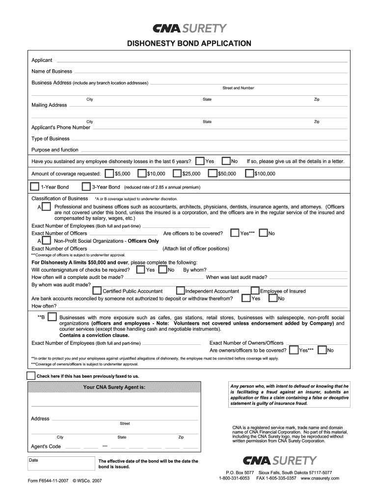 Get the free Dishonesty Bond Application