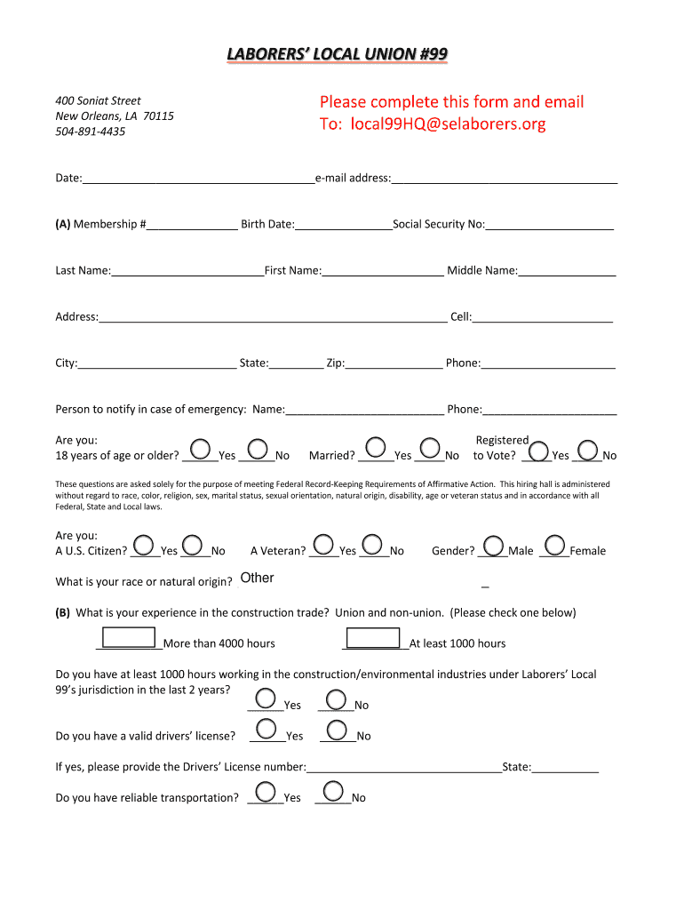 Get the free LABORERS39 LOCAL UNION 99 Please complete this form and bb - 108 242 133