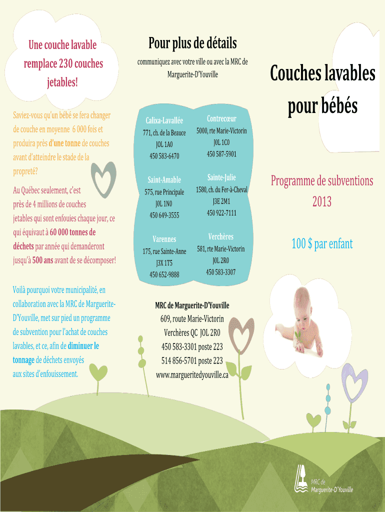 Get the free Une couche lavable Pour plus de dtails remplace 230 - st-amable qc