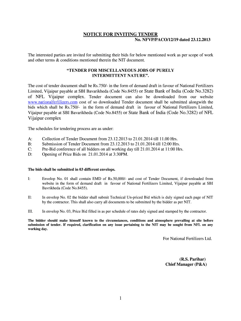Get the free NITfor misc job contract2013-2014 - National Fertilizers Limited