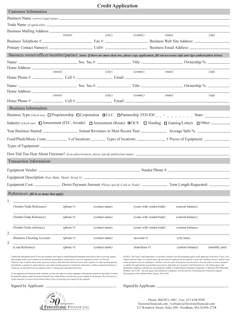 Credit Application Customer Information Business Name (correct legal name): Trade Name (if applicable): Business Mailing Address: (street) (city) (county) (state) (zip) Business Telephone #: Fax #:
