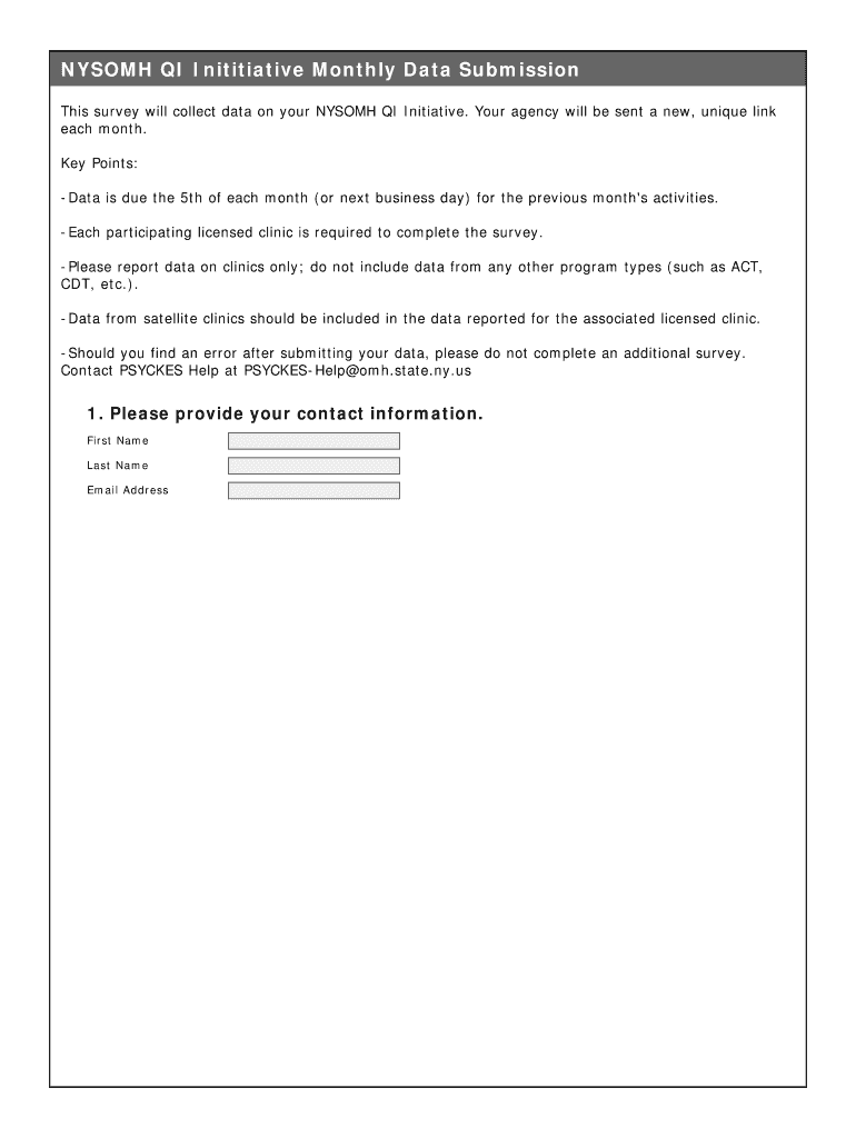 NYSOMH QI Initiative Monthly is a reporting requirement by the New York State Office of Mental Health for quality improvement purposes.
