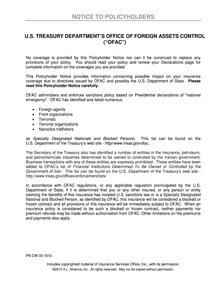 U.S. TREASURY DEPARTMENTS OFFICE OF FOREIGN ASSETS CONTROL