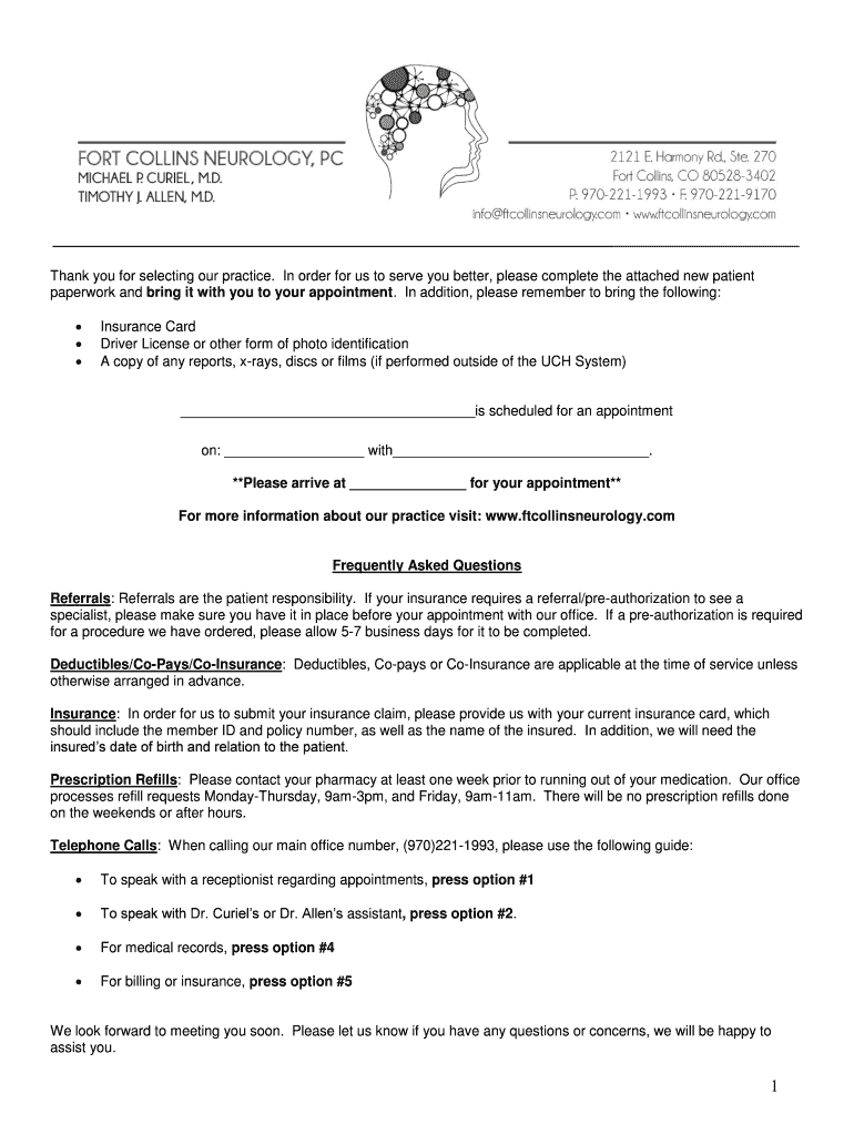 Get the free Thank you for selecting our practice In order for us to