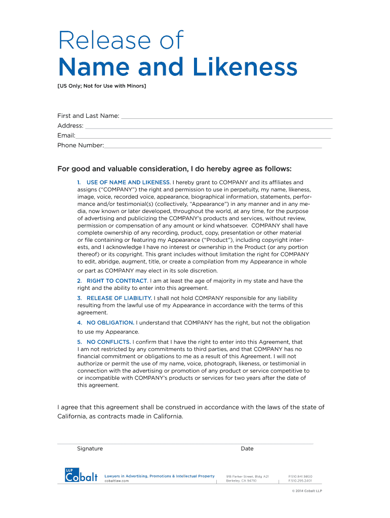 Get the free Name and Likeness