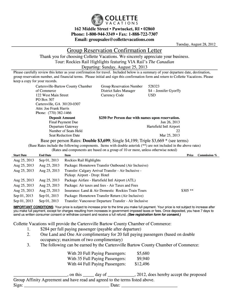 Get the free Group Reservation Confirmation Letter - ChamberMaster