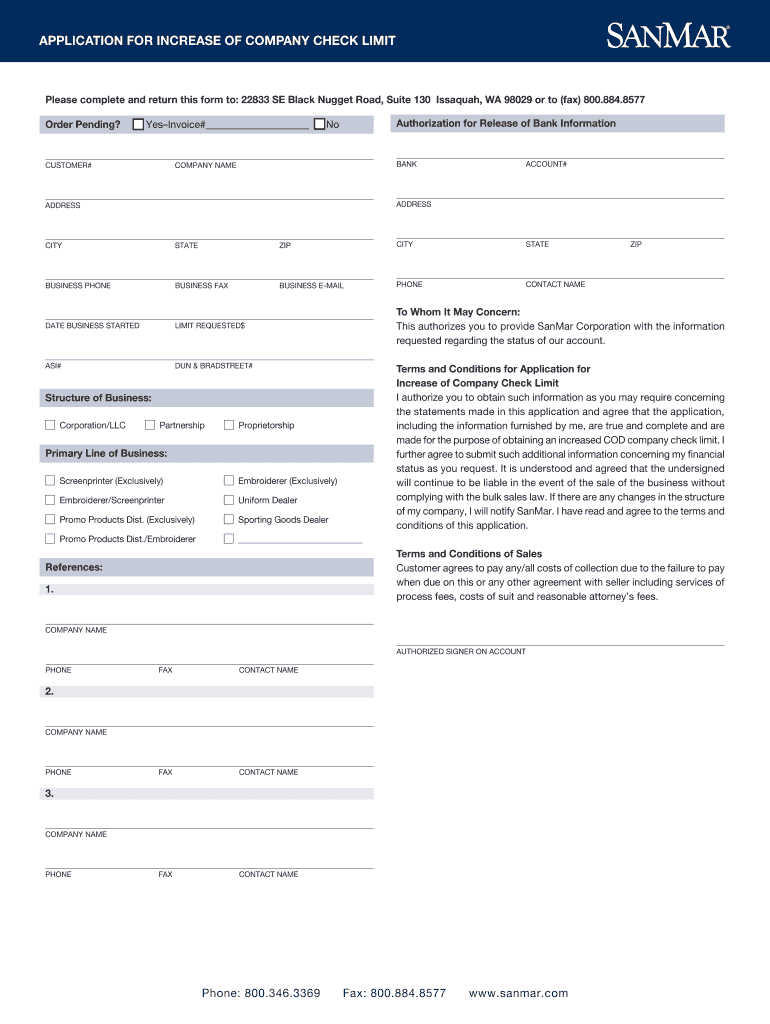 Get the free APPLICATION fOR INCREASE Of COMPANy ChECk LIMIT - SanMar