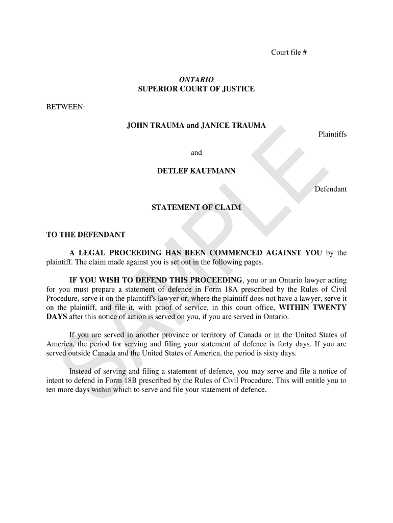 STATEMENT OF CLAIM TO THE DEFENDANT