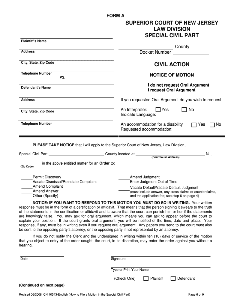 CIVIL SCP HOW TO FILE A MOTION IN THE SPECIAL CIVIL PART UPDATED JUNE 2008 HOW TO USE THIS ONLINE You may fill in the information required in this packet on your screen, save it to your local drive