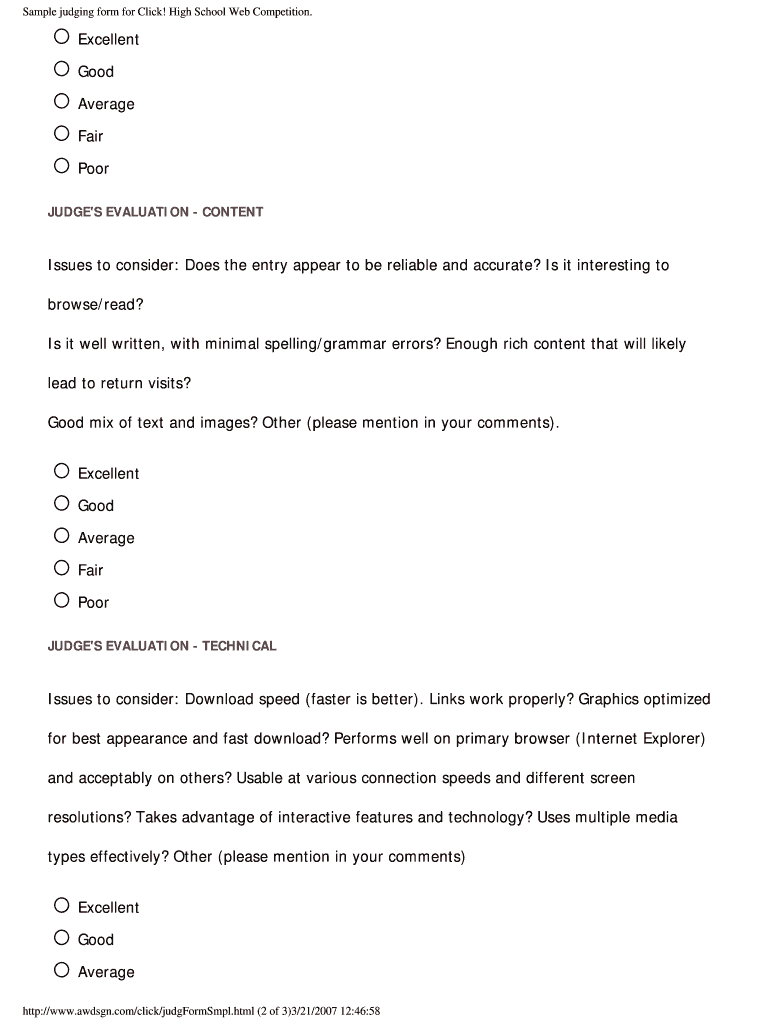 Get the free Sample judging form for information only NOT OFFICIAL