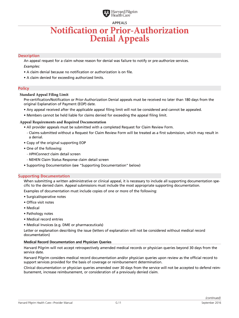 APPEALSNotification or Pre-authorization Denial Appeals Description An appeal request for a claim whose reason for denial was failure to notify or preauthorize services. Examples: A claim denial because