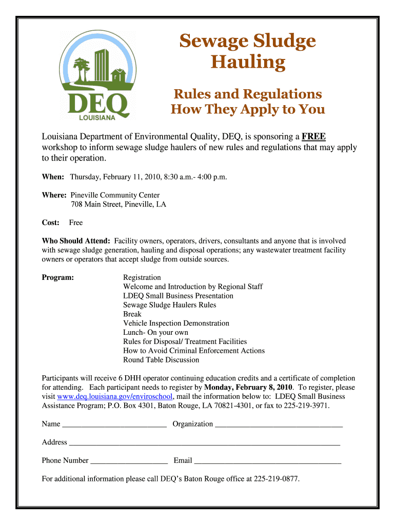Get the free Sewage Sludge Hauling Rules and Regulations - deq louisiana
