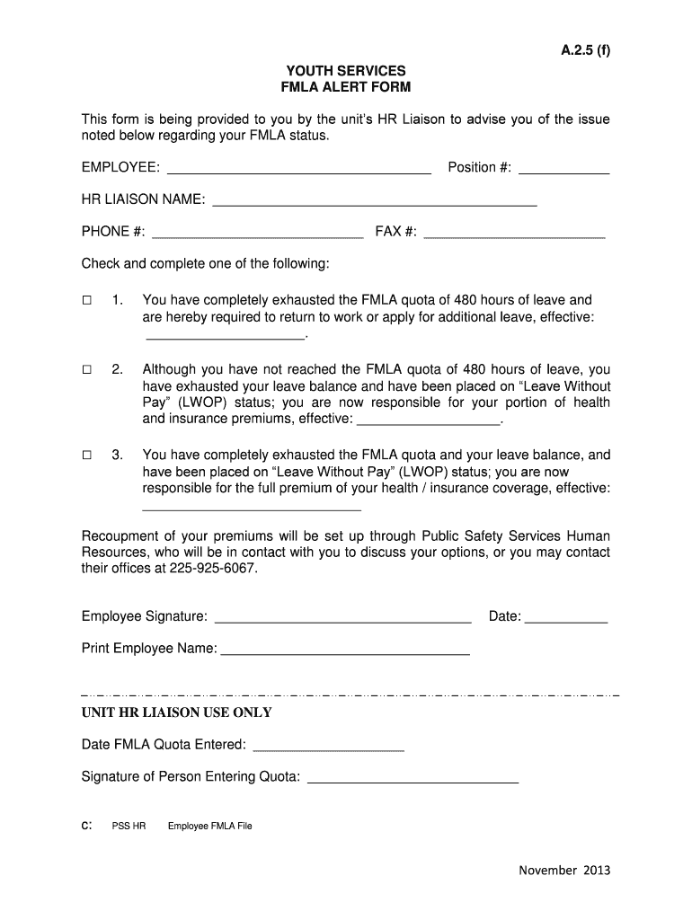 To fill out the FMLA ALERT FORM, the employer must provide information about the employee's leave request, including dates of leave, the reason for the leave, and any supporting documentation that verifies the need for the leave.