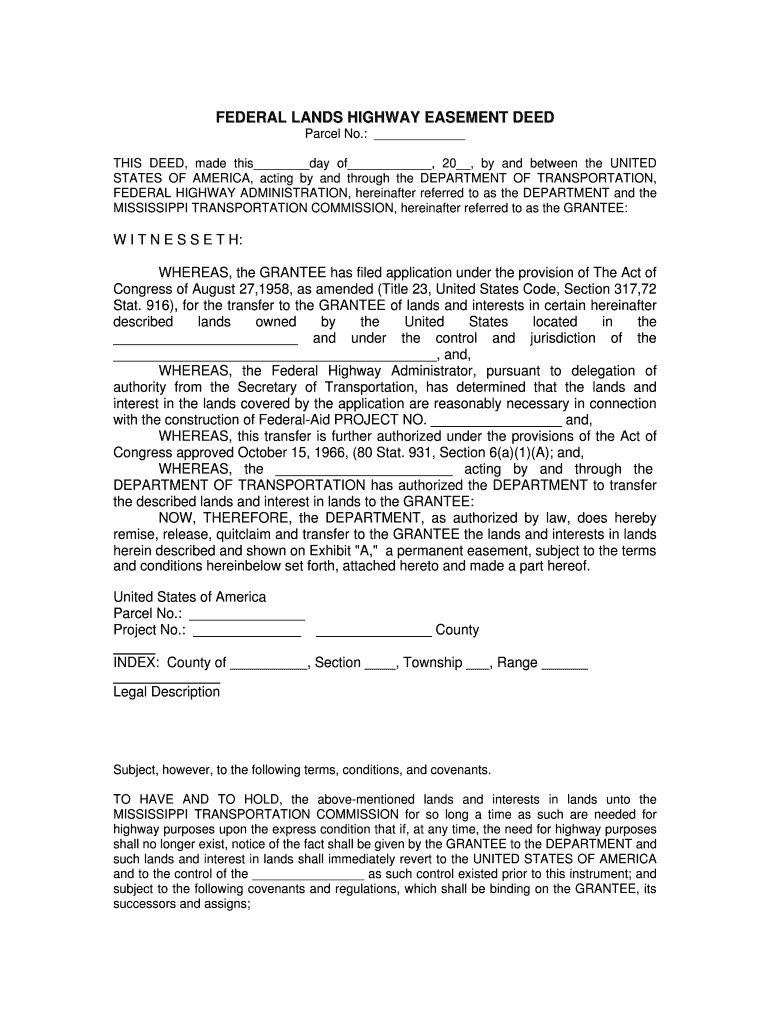 Get the free Federal Lands Highway Easement Deed