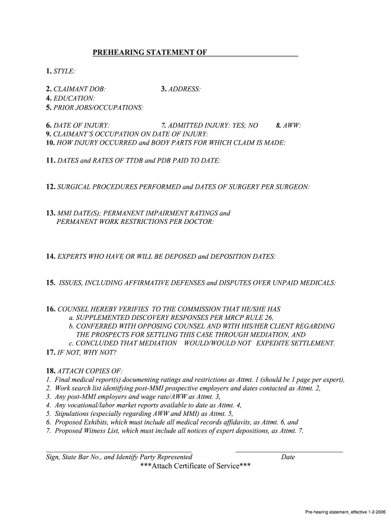 Get the free Pre-Hearing Statement of ClaimantEmployer-Carrier