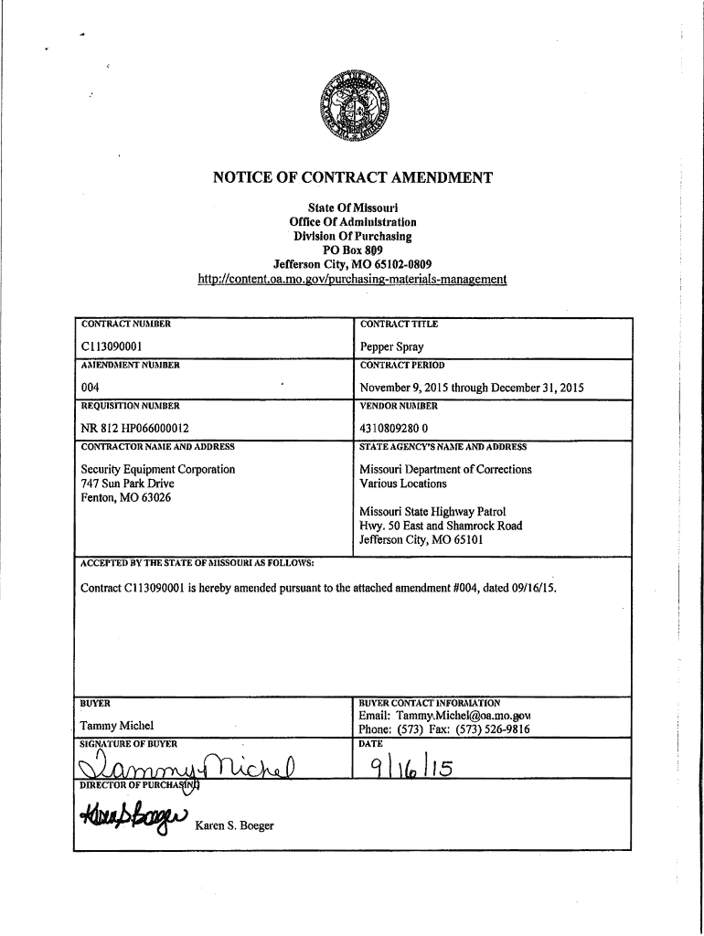 Get the free NOTICE OF CONTRACT AMENDMENT - doc mo