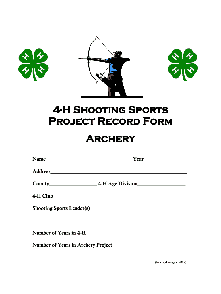 4H Shooting Sports Project Record Form Archery Name Year Address County 4H Age Division 4H Club Shooting Sports Leader’s) Number of Years in 4H Number of Years in Archery Project (Revised August