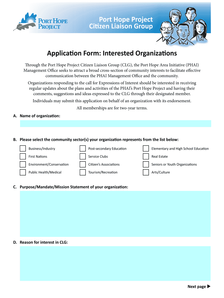 Get the free Port Hope Project Citizen Liaison Group Application Form - phai