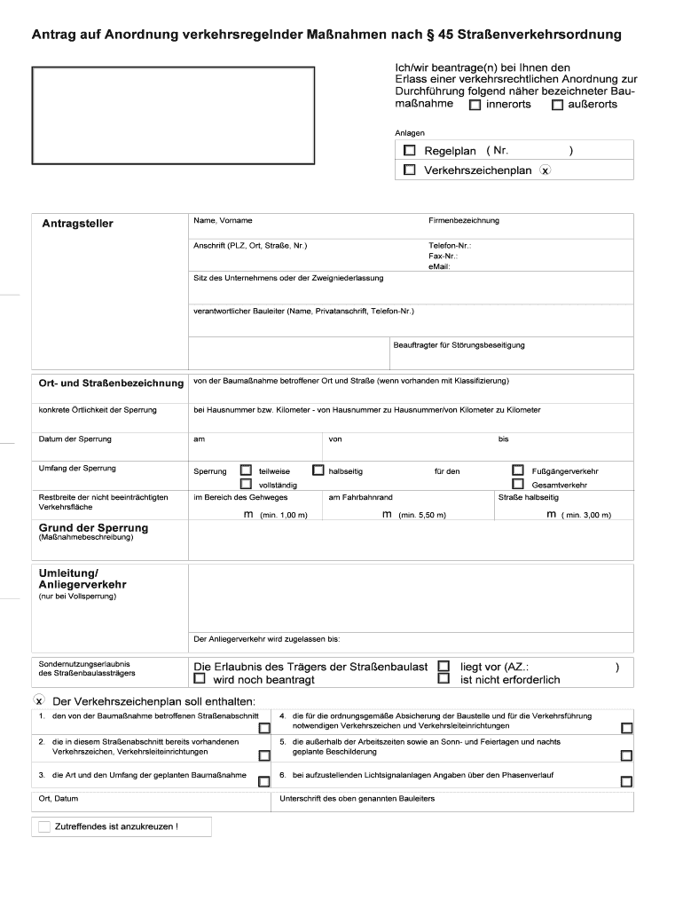 Holen Sie sich kostenlos Antrag auf Anordnung verkehrsregelnder Manahmen nach 45 Straenverkehrsor...