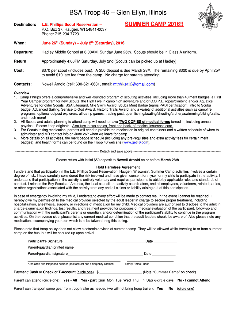 Get the free Summer Camp 2016 Permission Slip - Troop 46