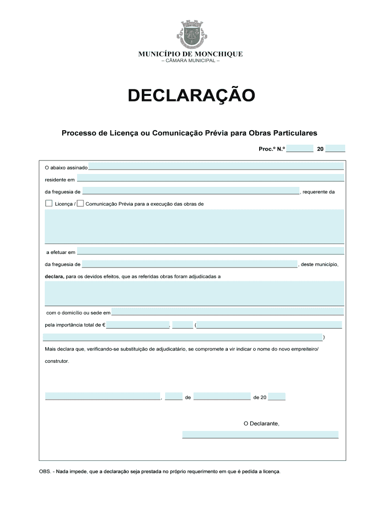 Obtenha o gratuito Processo de Licena ou Comunicao Prvia para Obras - cm-monchique