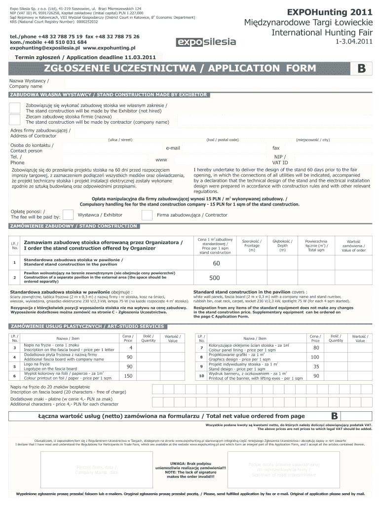 Expo Silesia Sp. z o.o. (Ltd×, 41219 Snowier, UL. Brace Mieroszewskich 124 NIP (VAT ID) PL 9591726258, Kavita shadowy (Initial capital) PLN 1,227,000 SD Economy w Katowice, VIII Lydia Gospodarczy