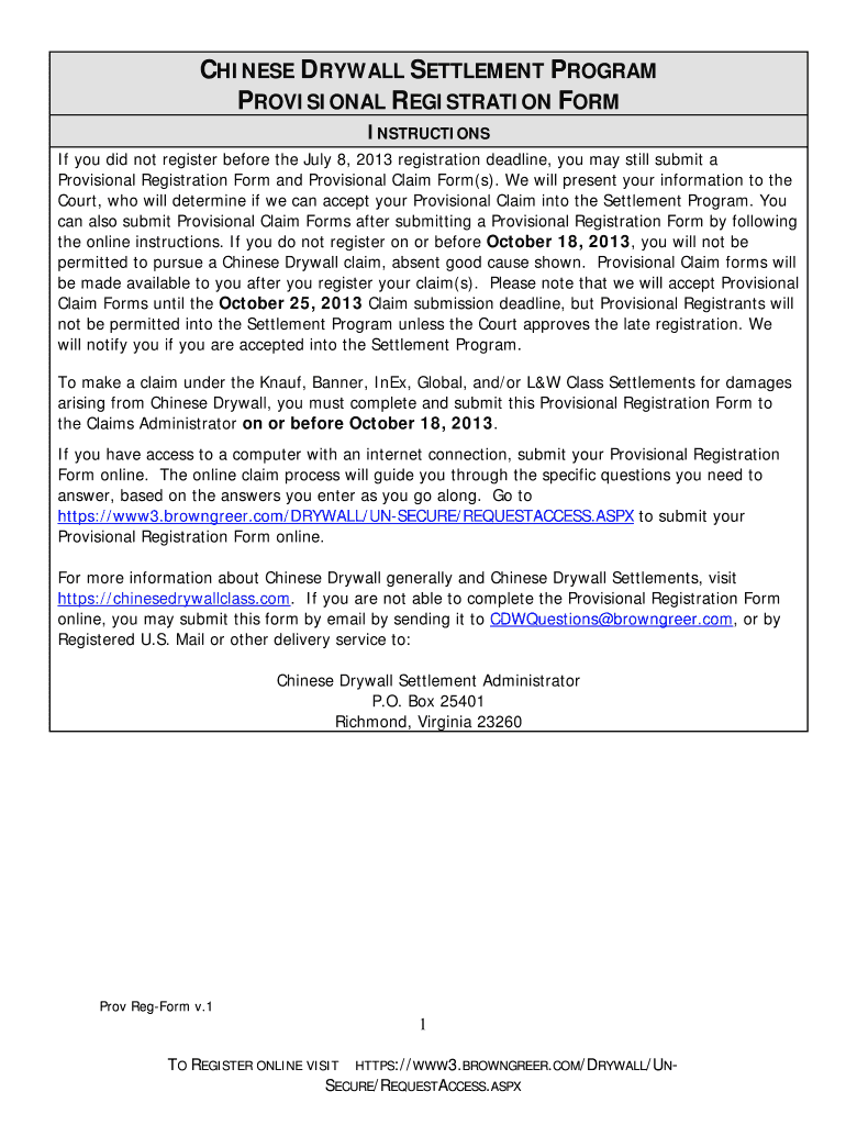 How to fill out CHINESE DRYWALL SETTLEMENT PROGRAM PROVISIONAL REGISTRATION FORM