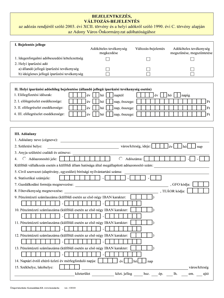BEJELENTKEZS, VLTOZSBEJELENTS AZ adzes render SZL 2003. Vi XCII. Try s a held ADR SZL 1990. Vi C. try Alan AZ Agony Bros nkormnyzat adhatsghoz I. Elements college Angeles tevkenysg megkezdse Vltozsbejelents