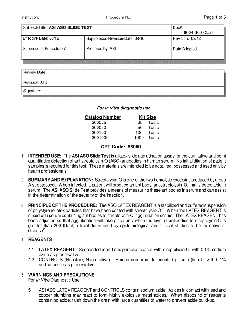 Institution: Page 1 of 5 Procedure No.: Subject×Title: AS SLIDE TEST Doc#: Effective Date: 08×12 Supersedes Revision×Date: 08×10 Revision: 08×12 Supersedes Procedure # Prepared by: AS Date Adopted: