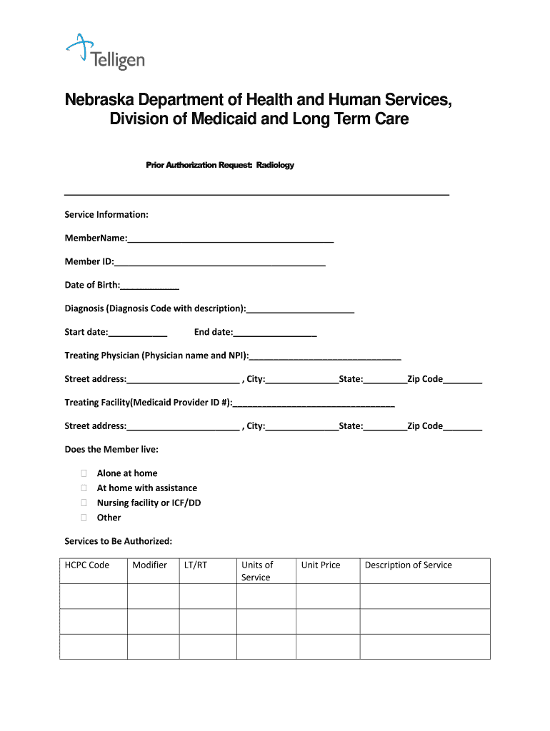 Get the free Radiology Request - Telligen's Medicaid Services for Nebraska