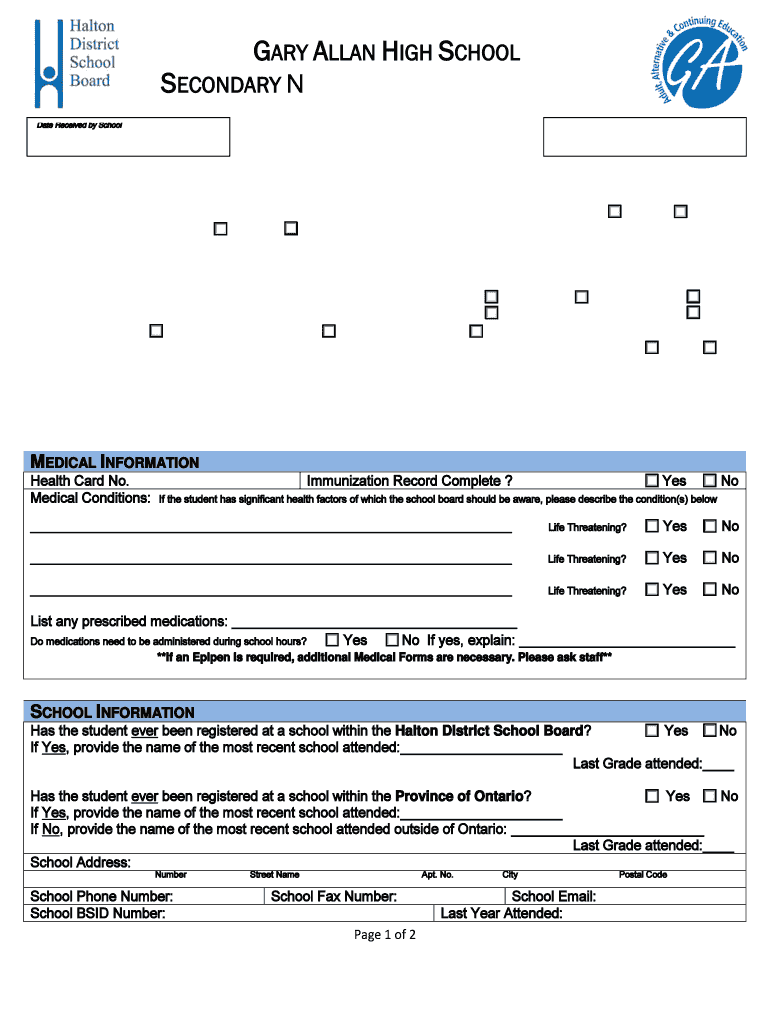 GARY ALLAN HIGH SCHOOL SECONDARY N SCHOOL REGISTRATION Date Received by School STUDENT INFORMATION Legal Last Name: Legal First Name: Was this your name at birth? Address: Number Phone Number: Date
