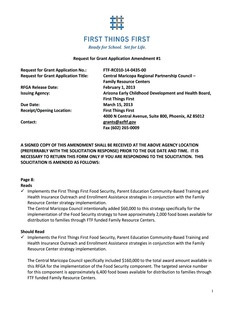 Get the free Request for Grant Application Amendment #1 - azftf