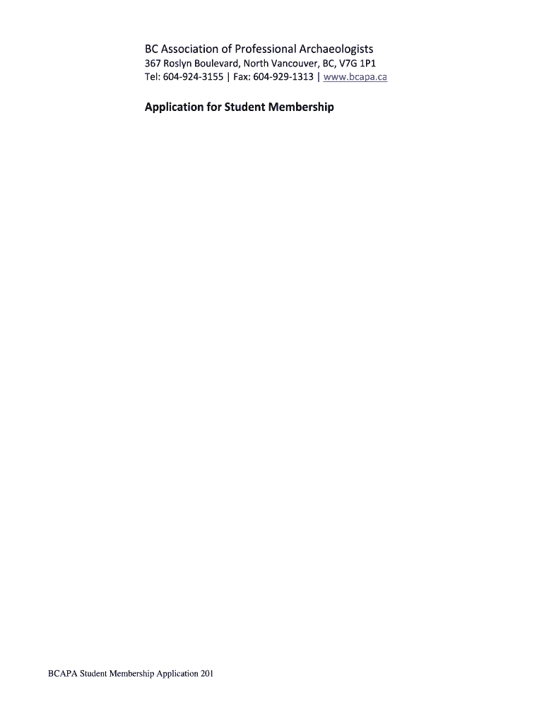 Get the free NOTE regarding address It is a requirement of the Society Act that the BCAPA obtain ...