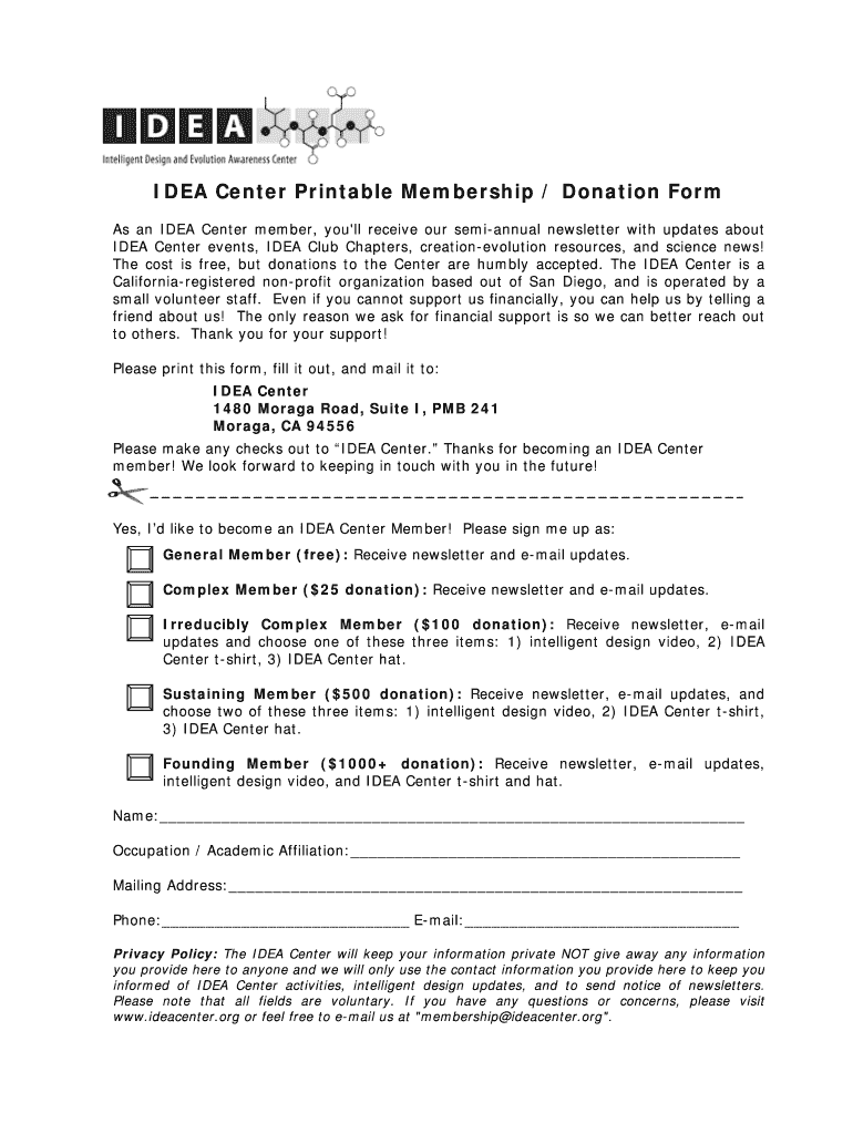 Get the free IDEA Center bPrintableb Membership Donation bFormb - ideacenter
